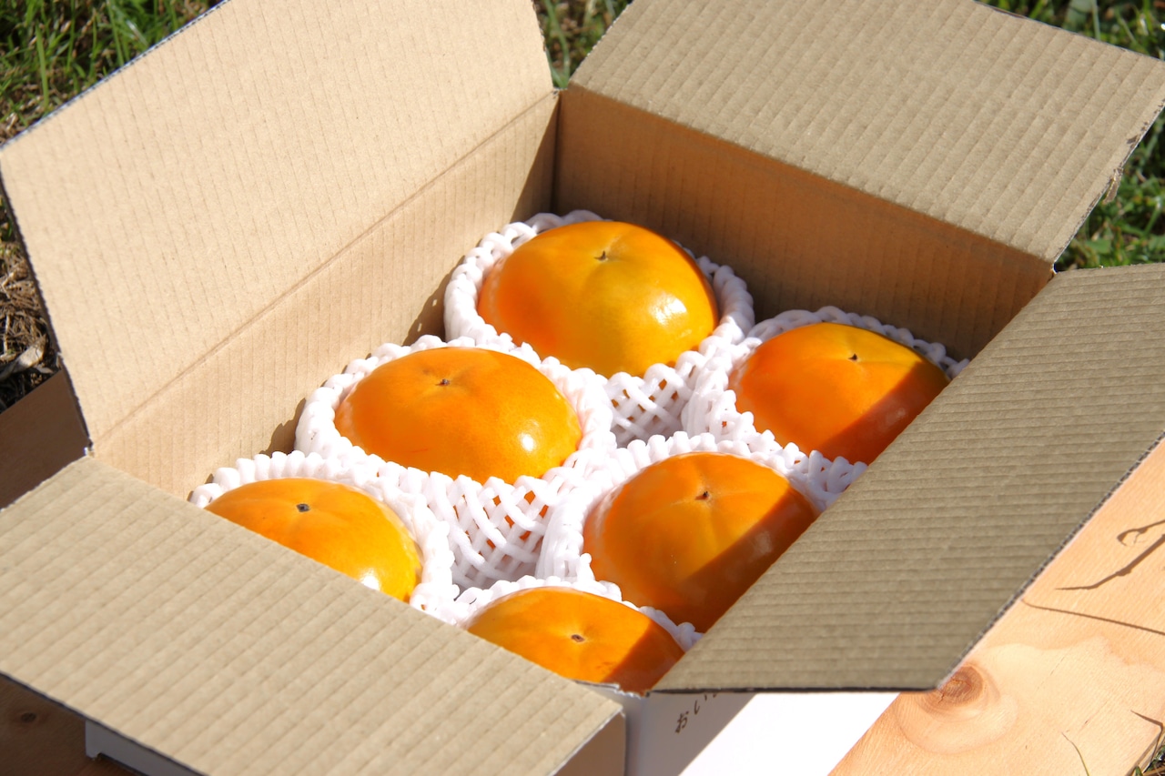 形と大きさが良さそうなものを選び抜いた、大きく、紅く、おいしい柿です。